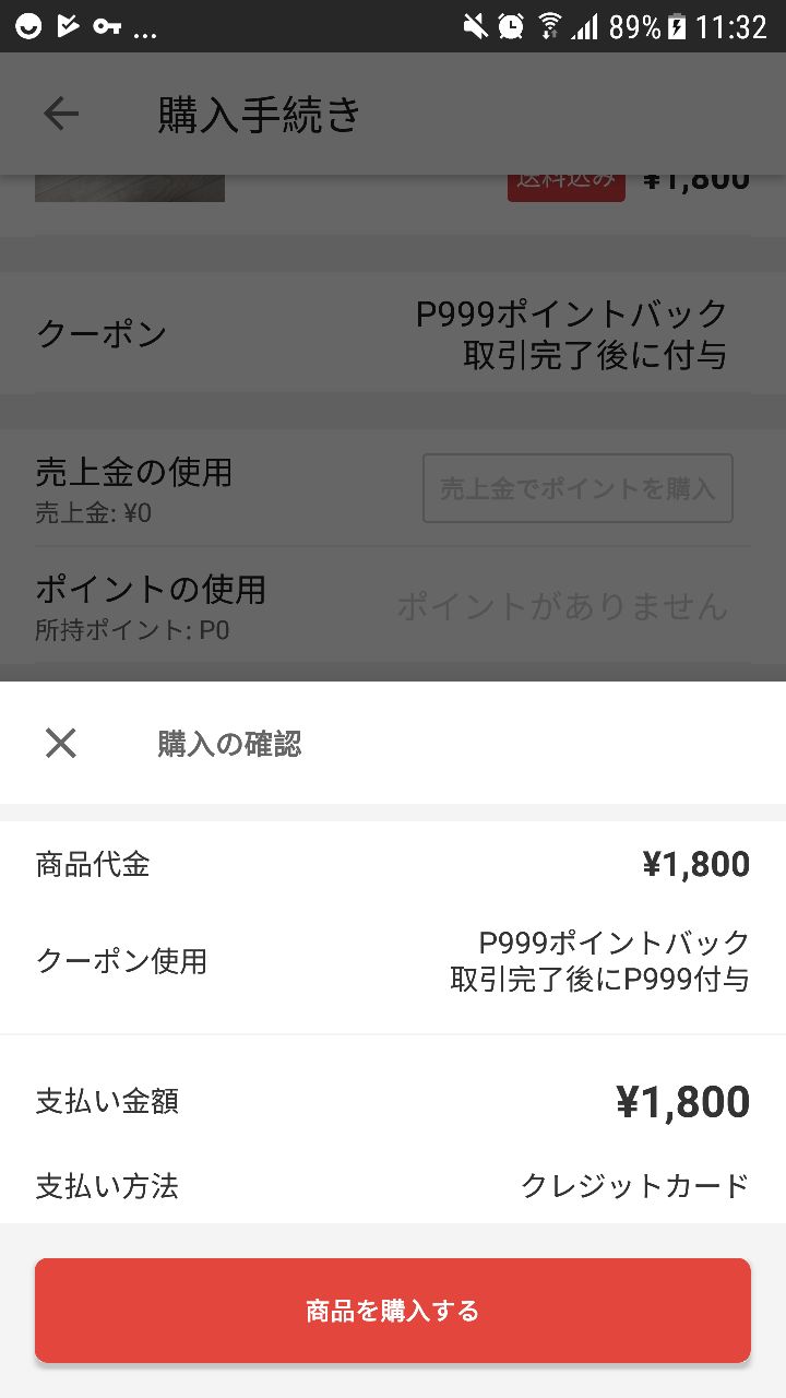 うまくいくと、以下のようにメルカリで商品が購入できるようになります。